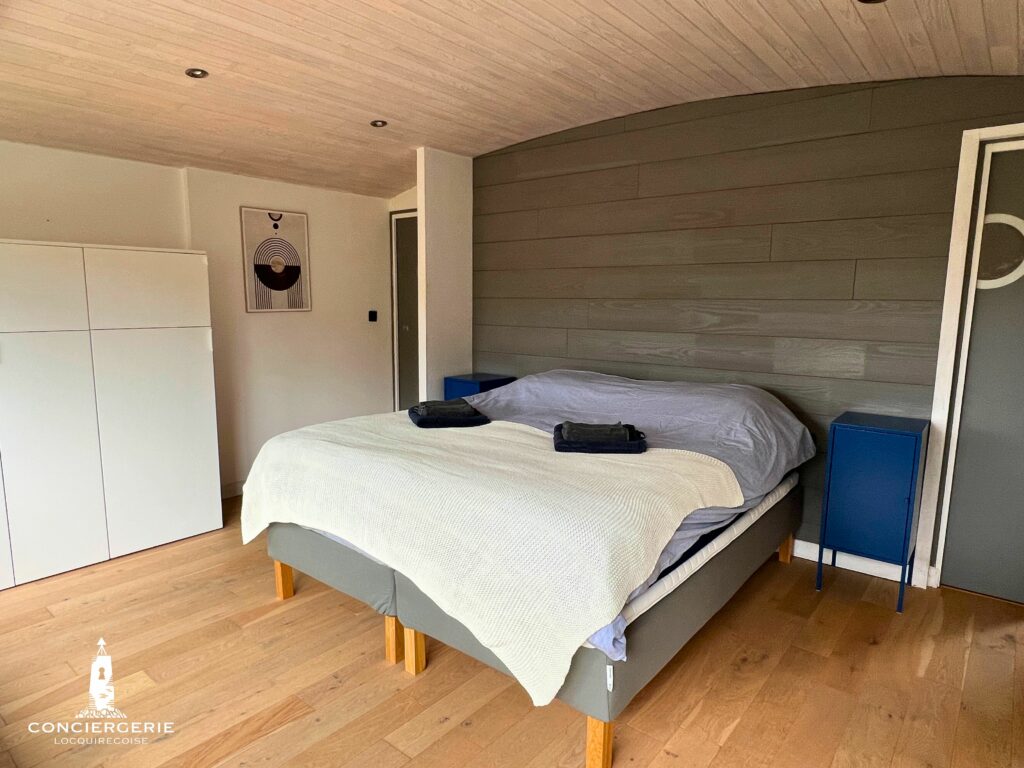 Nichée dans un cadre arboré à deux pas de la plage de Poul Rodou, cette superbe maison contemporaine est l'endroit idéal pour vos vacances.Dotée de tout le confort moderne, cette maison peut accueillir jusqu'à huit personnes, parfait pour les familles en quête de détente. Son atout majeur ? Une belle pièce de vie baignée de lumière, offrant une vue imprenable sur les bois. Profitez de la plage, de balades dans le GR34, et de moments de convivialité dans ce havre de paix.
